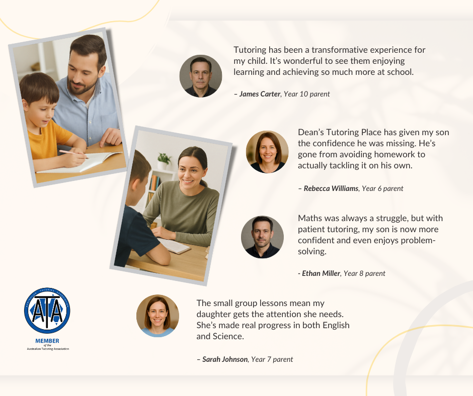At Dean’s Tutoring Place, we offer comprehensive tutoring for students from Prep to Year 12, specialising in Maths, English, Science, and Physics.