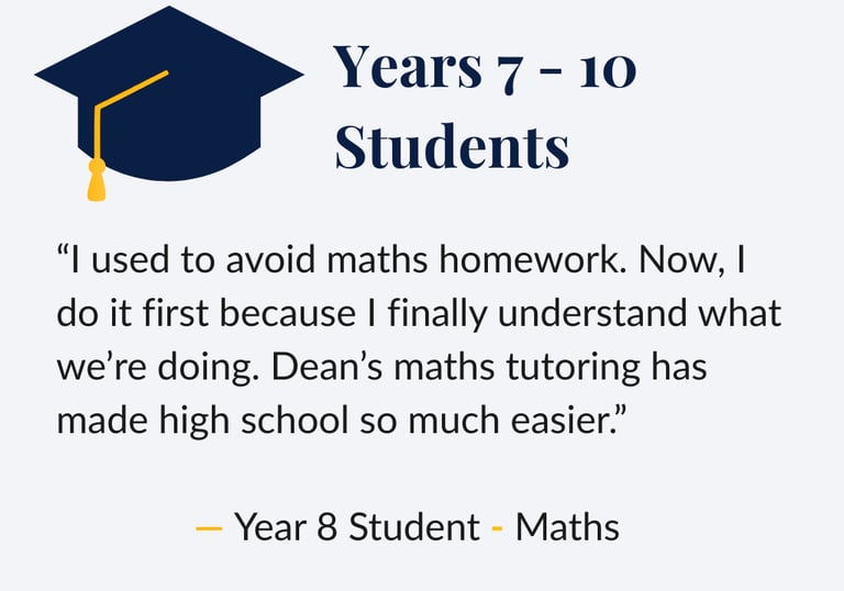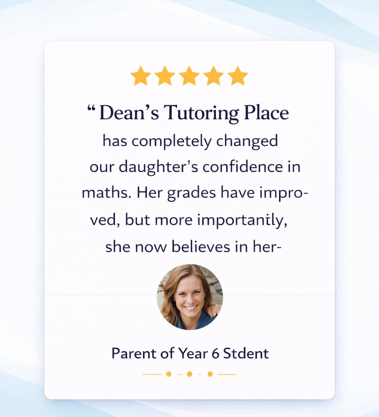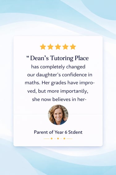 “I actually enjoy maths now.” • “My child’s confidence has grown so much.” — Parent • “We’re so glad we found Dean’s Tutoring Place.” — Parent