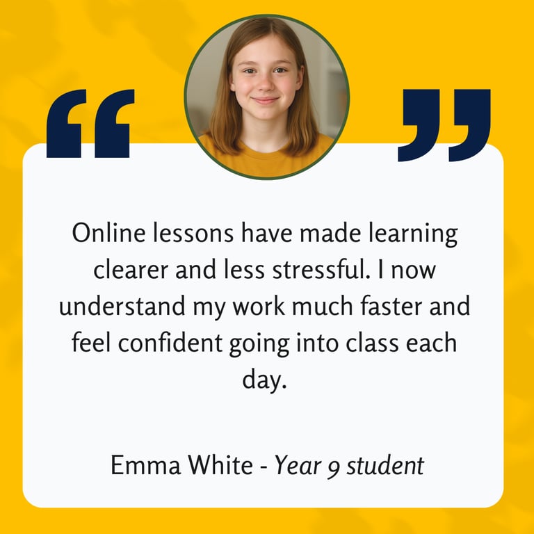 Students receive the same level of care, encouragement, and academic support as in-centre tutoring, helping them build confidence and achieve results.
