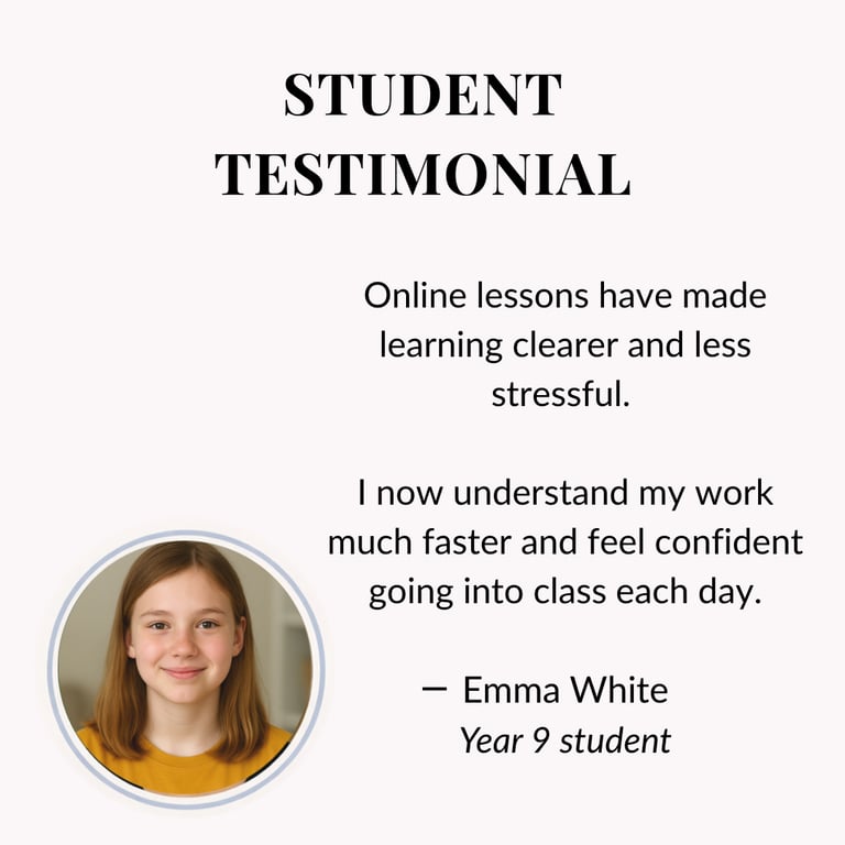 Yes. Our online tutoring follows the same structured approach as in-centre lessons, with clear explanations, guided practice and personalised feedback.