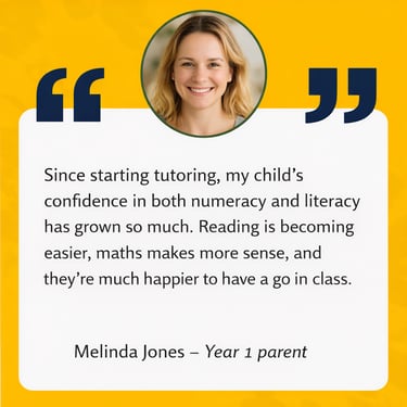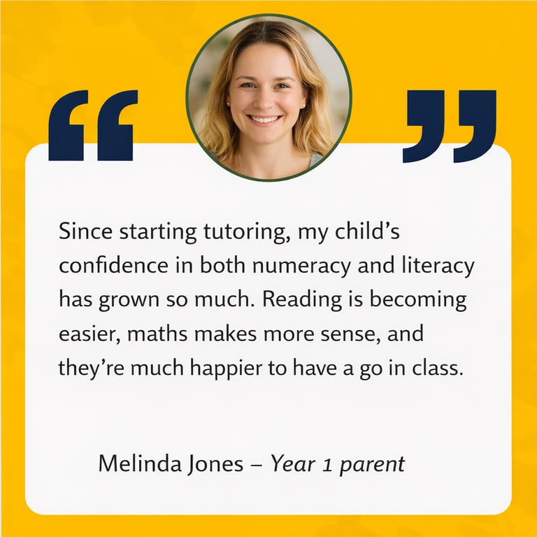 Each child learns differently, so our tutors tailor lessons to match your child’s pace and style. Whether it’s recognising sight words, improving handwriting, or mastering basic maths facts, we make sure every student feels capable and proud of their progress.