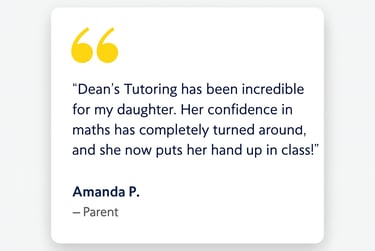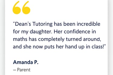 “Dean’s Tutoring Place has boosted my daughter’s confidence so much. She now understands her work and feels prepared every week.”