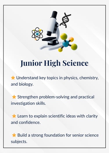By strengthening core skills now, students develop the habits, independence, and understanding they need for success in Years 11–12.